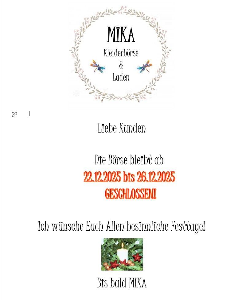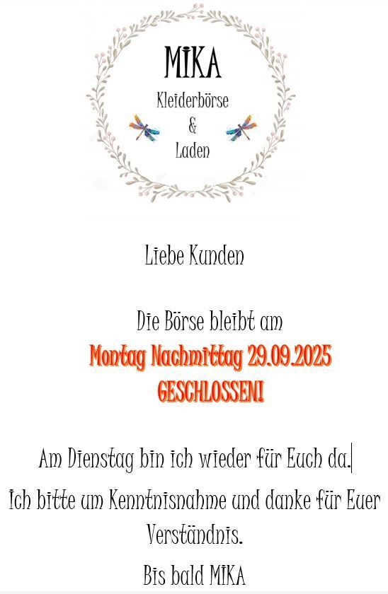 NEU: Montag Vormittag und Mittwoch ganzer Tag geschlossen